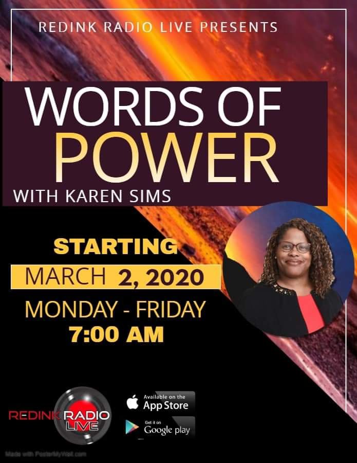 Uncategorized Words of Power with Coach Karen on RedInk Radio Live by Twisted Threads LLC • 0 Comments Get your Morning Inspiration From Coach Karen Sims. Week Day at 7am on Redink Radio Live! Download the app and get your inspiration on the go. Share this:Tweet Email a link to a friend (Opens in new window) Email Like Loading... Related